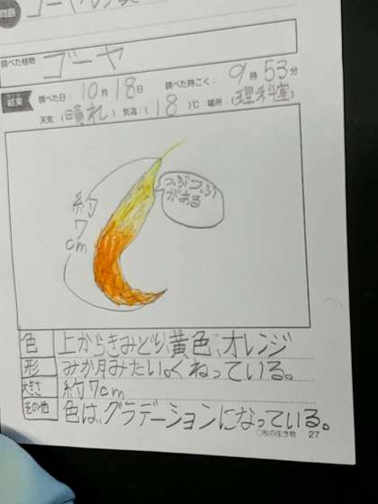 10月18日 4年生 理科「ゴーヤの実の観察」