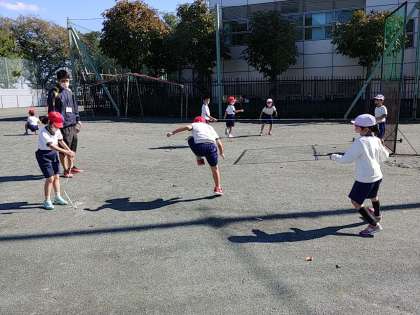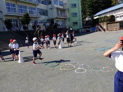 このリズムよく跳んだり、高く跳ぶ工夫をしたりすることが、この後の技能につながっていきます。ですから体育は低学年の体育は、単なる遊びではなく、そこには次の学年につながるという意図を持って授業を工夫しています。