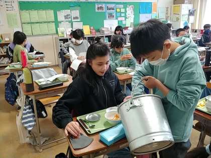 と声をかけます。するとそれに応えて何人かの子がおかわりに来ます。それでも残ったら、今度はその食缶を持って、「食べられる?」と聞きながら入れていきます。