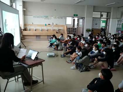4年生は、学年で先生から本の読み聞かせをしてもらいました。