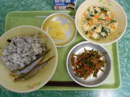 かみかみごはんはじゃこやわかめが入っているので自然によく噛むようになるごはんです。