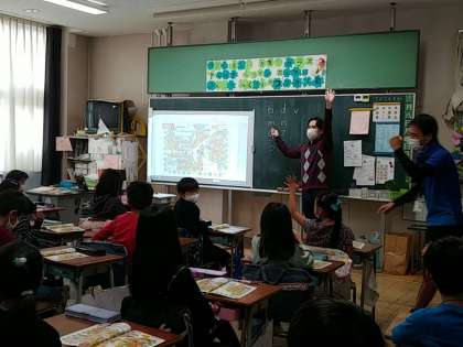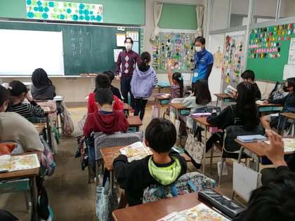 今日の4年生の1つのクラスでは、外国語活動で、アルファベットの学習をしていました。