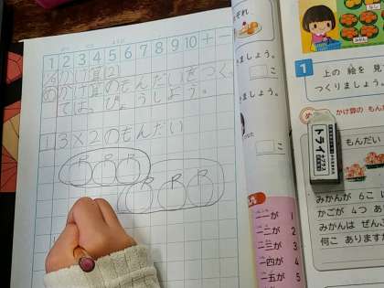 問題を作るのも、かけ算の定着には有効ですね。かけ算の意味がわかっていないと問題ができないからです。