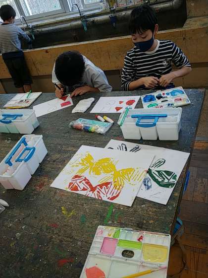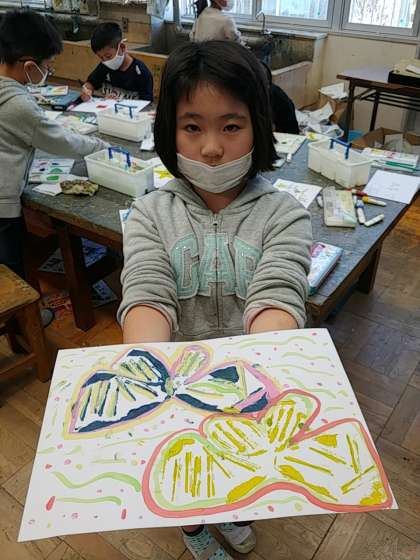 3年生の図工は、「いろいろうつして」です。もうこの単元は完成している子がどんどん増えてきていて、終わった子はいろいろな色を作って楽しんでいました。
