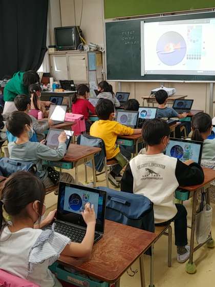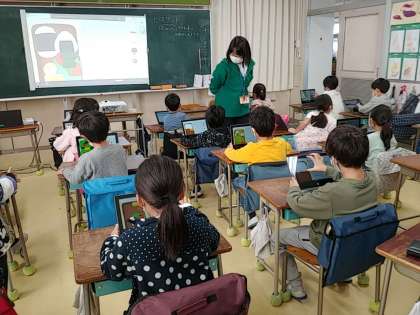 今日は、1年生がプログラミングに挑戦しました。小宮小はこれまで、3年生以上がスクラッチを使ったプログラミングをしていました。今年度も時間を見つけてはプログラミングをしていて、年々そのクオリティが上がっています。