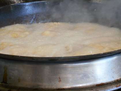 揚げる時に4kgのいかを入れるので、泡がいきよいよくたちます。