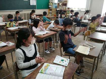 今日の2年生の音楽は、とっても楽しくリズム打ちをしました。