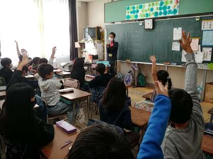 クイズの問題は、先生が示して、子どもたちがそのお題に合わせた答えを書いて、先生に渡しました。
