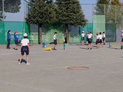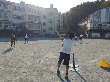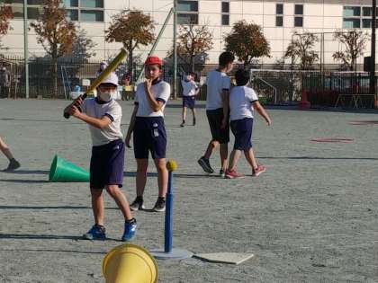 6年生の1つのクラスでは、校庭でベースボール型ゲームをしていました。