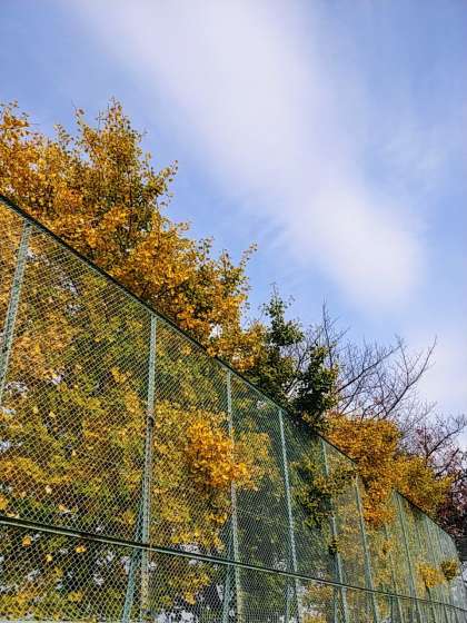 まずは、八王子市の木である「銀杏」ですね!校庭のフェンスの外に大きく顔を出しています。