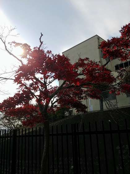 まだ暖かい日が続いているので、鮮やかな紅葉とまではいきませんが、今日は、なかよし広場と校庭横の紅葉がきれいだったので、ご紹介します。
