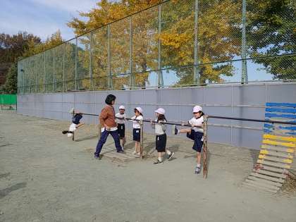 子どもたちは、先生のアドバイスを聞きながら、一生懸命にさかあがりをがんばっていました。