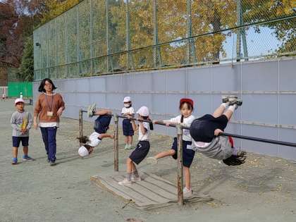 子どもたちの鉄棒の様子を見ていると、簡単に「空中逆上がり」をしている子もいる反面、「おふとん」と言って鉄棒にお腹をのせて、逆さになる技も怖くてできない子もいました。