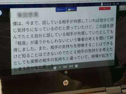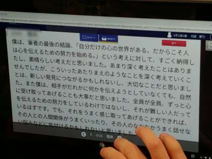 子どもたちは、このお話を読んで自分なりの考えをもち、それを学習用端末に入力しました。