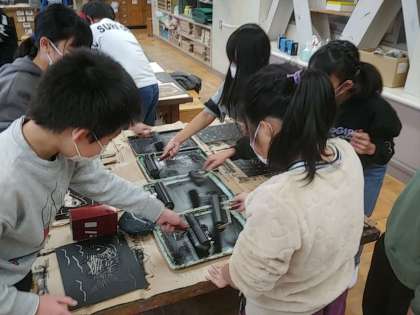 12月8日 4年生 図工「彫って刷って見つけて」