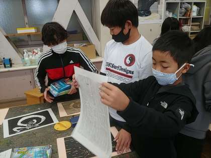 4年生の図工は「彫って刷って見つけて」です。