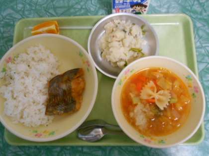 八王子産の野菜と刻みたまねぎのトッピング・・・温かいトマトスープです。