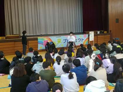 今日は、本校のオリンピック・パラリンピック教育の取り組みとして、夢未来プロジェクトを行いました。これは、アスリートの方をお呼びしてお話をしていただき、子どもたちの夢と未来を広げようという企画です。