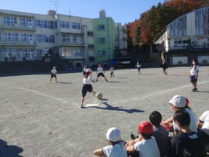 1つのクラスは走り幅跳びを、もう1つのクラスはキックベースボールをしていました。