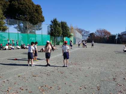 肌寒い校庭でしたが、日があたり、体を動かしているとだんだんと汗が滲んできました^_^