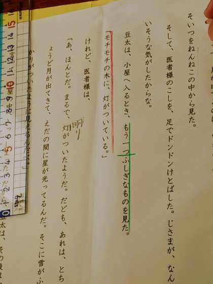 そして今日の読み取りの最後は題名である「モチモチの木」という木に明かりがついているという場面でした。
