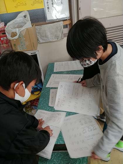 復習は学習プリントで行いました。自分で学習プリントに挑戦し、できたら自分で答え合わせを行います。