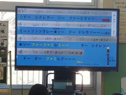 5年生の音楽では、リコーダーで「威風堂々」という曲に挑戦しています。