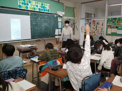 子どもたちの中には、2つの資料を関連付けて発表する子もいるなど、よく考えた意見をたくさん発表してくれました。