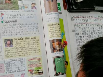 教科書には、八丈島の酪農についての資料がいくつも紹介されており、それを見ながら八丈島の酪農のことで気がついたことを発表していきました。