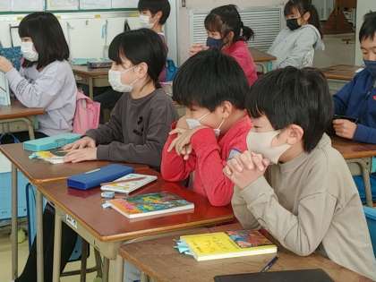 一生懸命に詩を読む子とじっと聞いてあげる子。詩の紹介の授業は、健気な子どもたちのがんばりに支えられているようでした^_^