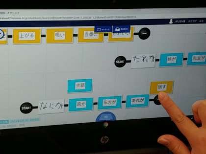 最後に主語の分類をしました。「何が」に入るもの、「誰が」に入るものです。オクリンクはシートを繋いだり外したり、入れ替えたりが簡単にできるので、子どもたちは自分の作ったカードを自在に動かしていました^_^