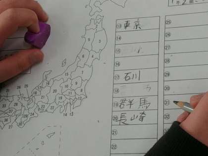 そこで書写の先生は、都道府県の名前を書くプリントを配りました。