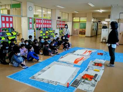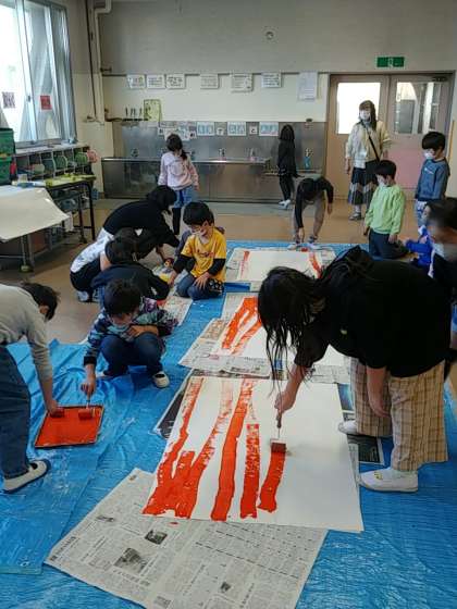 ただ色を付けると言っても、ベタ塗りでは味が出ないので、「かすれたりしてもいいよ」と話して、子どもたちの感性で色をつけてもらいました。