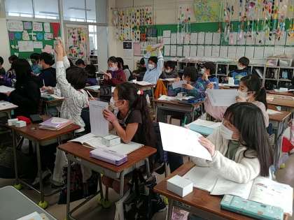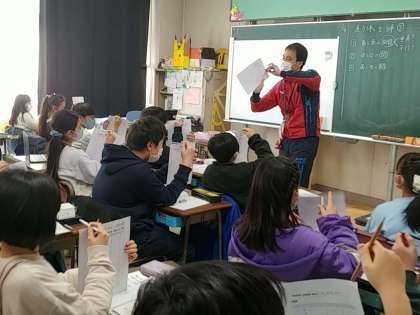 子どもたちは、辺と面でも垂直や平行の関係が成り立つことを学びました。