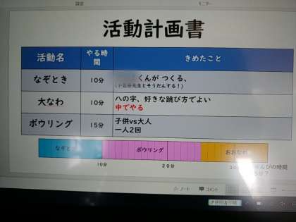 最初に、なぞときを行い、次にボーリングを楽しみました。困ったときはアイデアを出したり、友だちに声を掛けたりしながら、積極的にコミュニケーションをとろうとする姿も見られました。