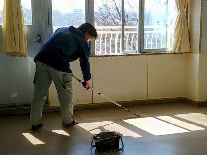 ただ、塗ってみてわかったことがありました。それは1年生から3年生までの教室の床に塗ったクリーム色は、とても汚れが目立ってしまうということでした。テニスボールをつけて跡が残らないように工夫してはいますが、それでも汚れが目立ちます。