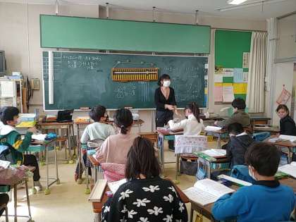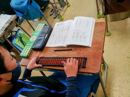 3年生の1つのクラスでは、算数で「そろばん」に、取り組んでいました。