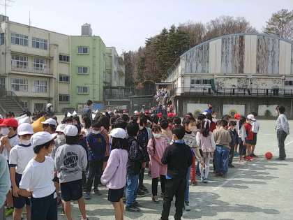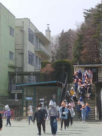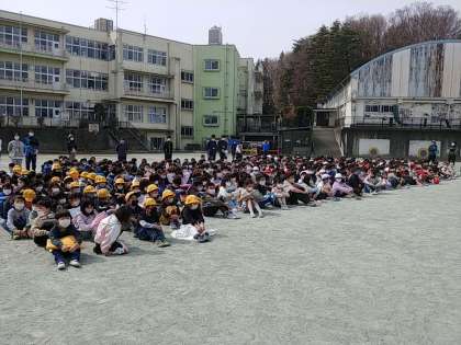 今日は、中休みに地震を想定して校庭に避難しました。