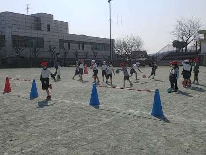 3月11日 2年生 体育「ボールを足で運べるかな」