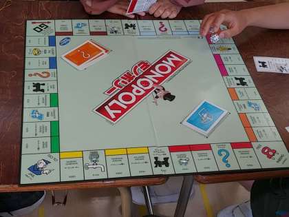 最後の小集団活動では、モノポリーというボードゲームを行いました。子どもたちのリクエストです。これもボードゲームをしながら、お互いにコミュニケーションをとることを目標に楽しみました。