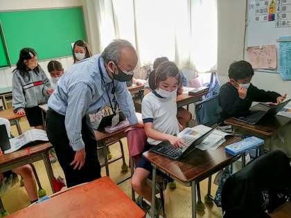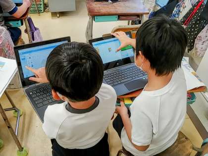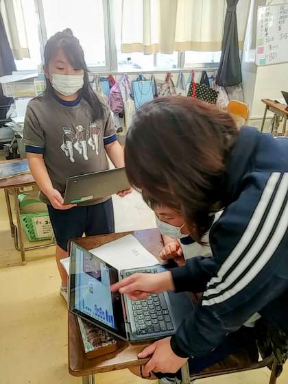 3年生の1つのクラスでは、総合的な学習の時間でスクラッチを使ったプログラミングに取り組んでいました。