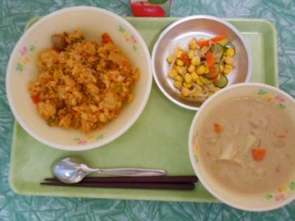 チキンライスは、ケチャップの酸味を飛ばすために じっくりと煮込んでから