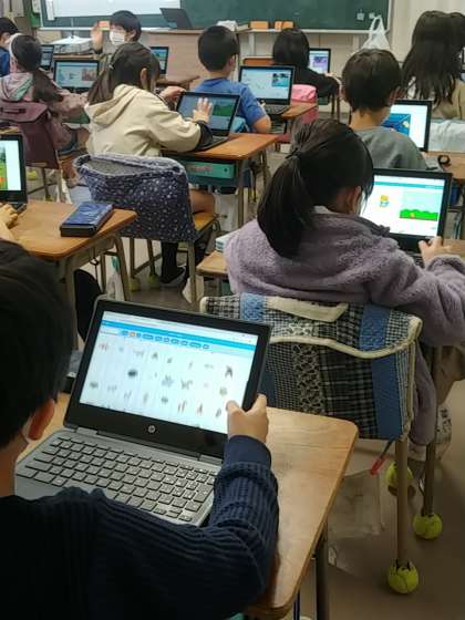 4年生の1つのクラスでは、総合でスクラッチを使った「プログラミング」を進めていきました。