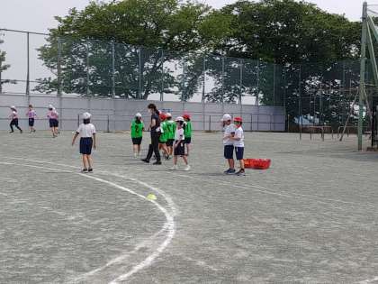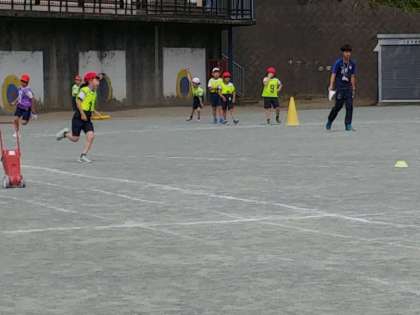 そして、その円の周りを走りながら、バトンを渡す練習をしていきました。円なのですぐにバトンを渡すことができ、効率的に練習ができました。