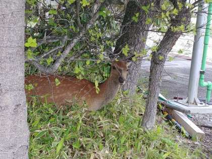 途中で鹿が、ゆったりと座っていて、子どもたちはびっくり。こんなに間近に見ることができるなんて驚きでした。