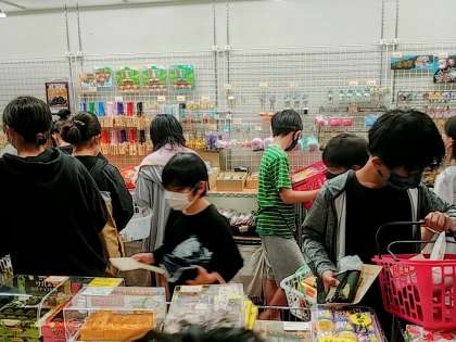 大人気「焼餃子チップス」です。これを2つも3つも買っている子がいて、それだけで買い物に使うカゴが一つではたりなくなり、2つ重ねるはめに(笑)