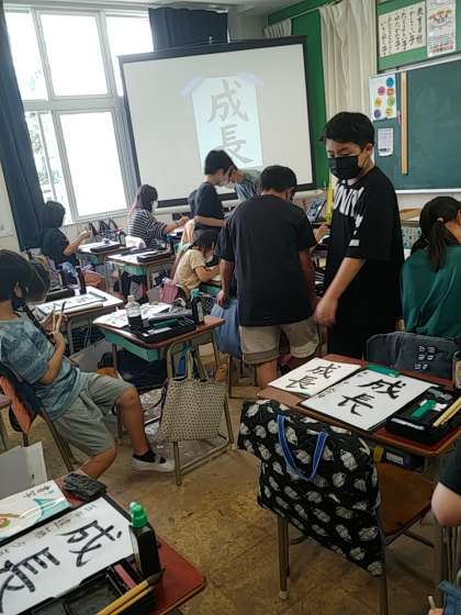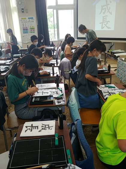 5年生の一つのクラスでは 書写で「成長」という文字を書きました。