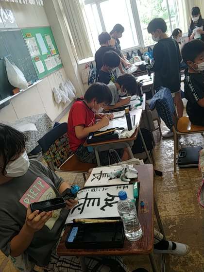 子どもたちは、苦労しながらも、自分の納得のいく文字が書けるまで、何回も先生に紙をもらいながら、頑張って書いていました。