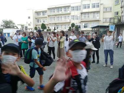 たくさんの保護者の方と先生方が手を振ってくれました。子どもたちも手を振り返して応えます(*^^*)