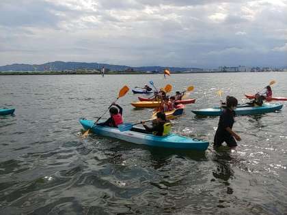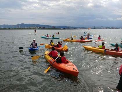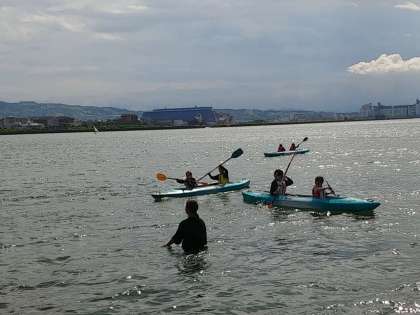 最後に海の中に入ったのは、二人乗りカヌーの子どもたちです。